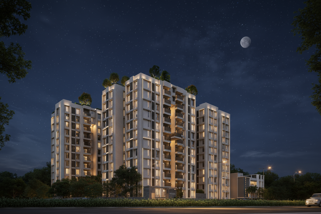 The architecture seamlessly blends modern design principles with open, breathable spaces. Each home is crafted to maximize natural light and ventilation, thanks to 3-side open layouts and cross-ventilated rooms, ensuring a refreshing connection with nature throughout the day. The expansive interiors allow you to enjoy spacious living zones, well-planned bedrooms, and functional balconies that make everyday life harmonious and comfortable.